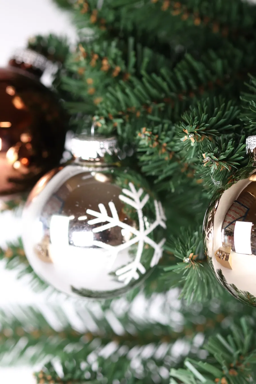 Julekuglerne er udført i elegante metalliske nuancer af sølv, guld og bronze, hvor nogle er dekoreret med smukke snefnug og tekst, hvilket giver et varieret og stilfuldt udtryk. De blanke overflader reflekterer lyset smukt og spreder en hyggelig glød på juletræet. Med deres tidløse design kan de kombineres med både moderne og klassisk julepynt for et harmonisk og gennemført udtryk. Et klassisk sæt, der leveres i praktiske opbevaringsæsker og kan bruges år efter år.