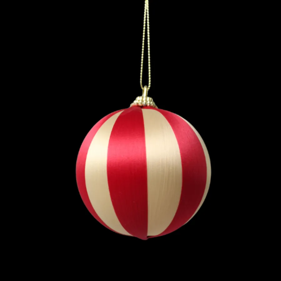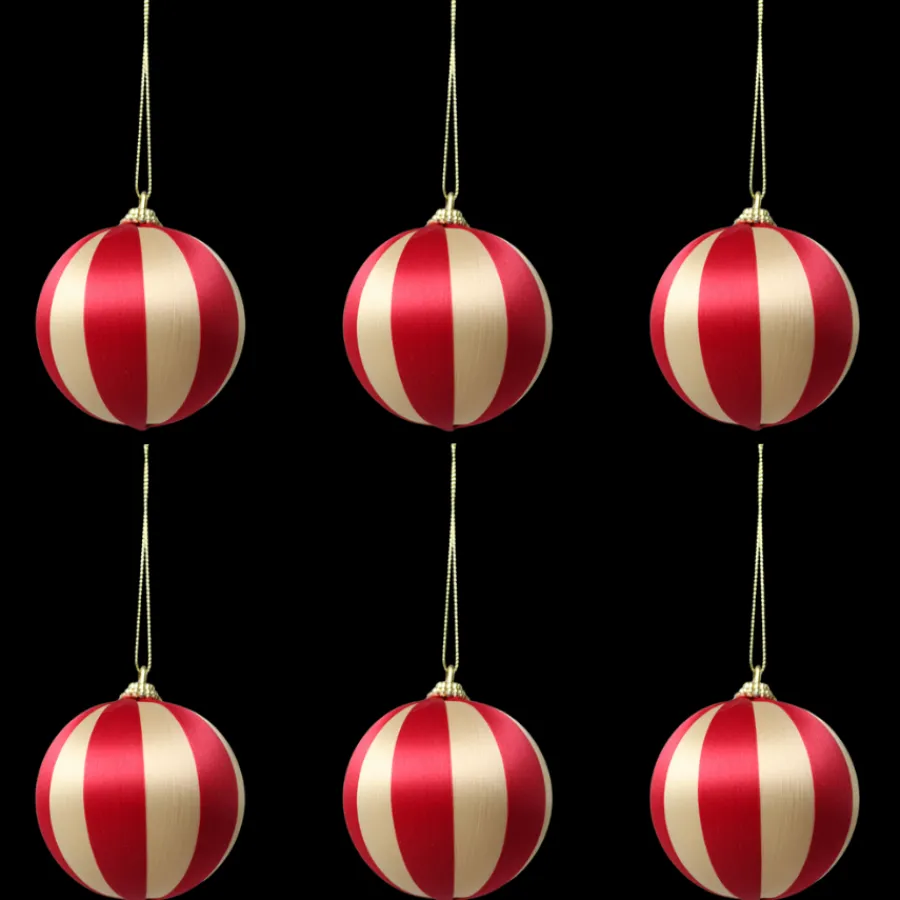 Julekuglerne giver juletræet et klassisk og festligt udtryk. Kuglerne er designet med elegante, lodrette striber i rød og guld, der skaber et smukt og levende spil mellem farverne. Den blanke overflade reflekterer lyset og tilfører en varm og indbydende glød til julepynten. Med deres størrelse på 8 cm fungerer de som perfekte blikfang på træet, men kan også kombineres med andre kugler for et harmonisk og gennemført helhedsindtryk. Et tidløst sæt, der bringer den traditionelle julestemning frem år efter år.