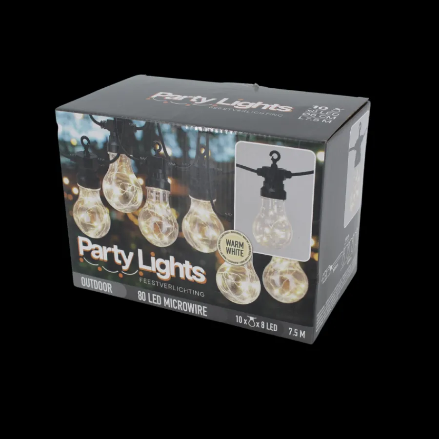 Denne LED lyskæde er specielt designet til udendørsbrug og strækker sig over 7,5 meter. Med sin længde kan du nemt dække større områder og skabe en smuk belysning udendørs. Den varme hvide belysning tilføjer en hyggelig atmosfære til din have, terrasse eller altan, og lyskæden er perfekt til at skabe en magisk stemning ved udendørsarrangementer eller fester. Lyskæden har 10 pærer med 8 små LED lys i hver.