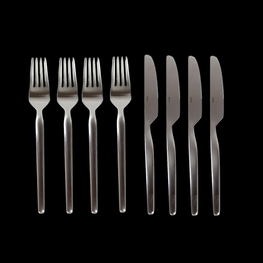 Bestiksæt Dorotea Night i mat stål (8 dele) er et elegant og funktionelt sæt, der kombinerer nordisk minimalisme med høj kvalitet. Sættet indeholder 4 knive og 4 gafler, alle udført i rustfrit stål med en mat finish, som giver et moderne og tidløst udtryk. Det enkle design ligger behageligt i hånden og passer perfekt til både hverdagsbrug og festlige lejligheder.