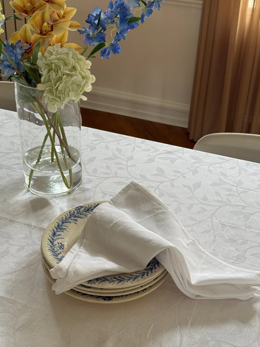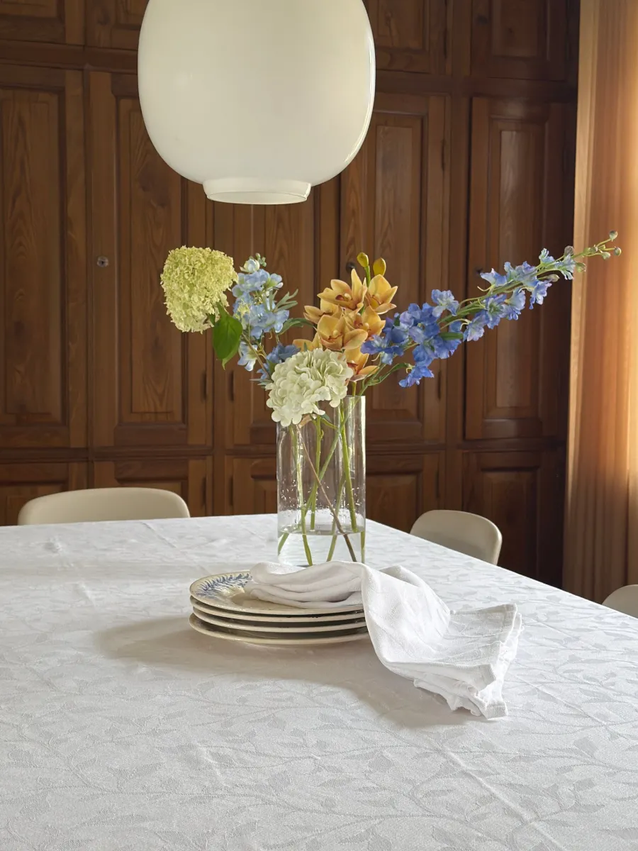 Skab en smuk og eksklusiv borddækning med Dug METTE i Jacquard. Den rene hvide farve kombineret med et elegant jacquardvævet mønster giver et tidløst udtryk, der passer perfekt til både festlige anledninger og hverdagsmåltider, hvor du ønsker lidt ekstra elegance.