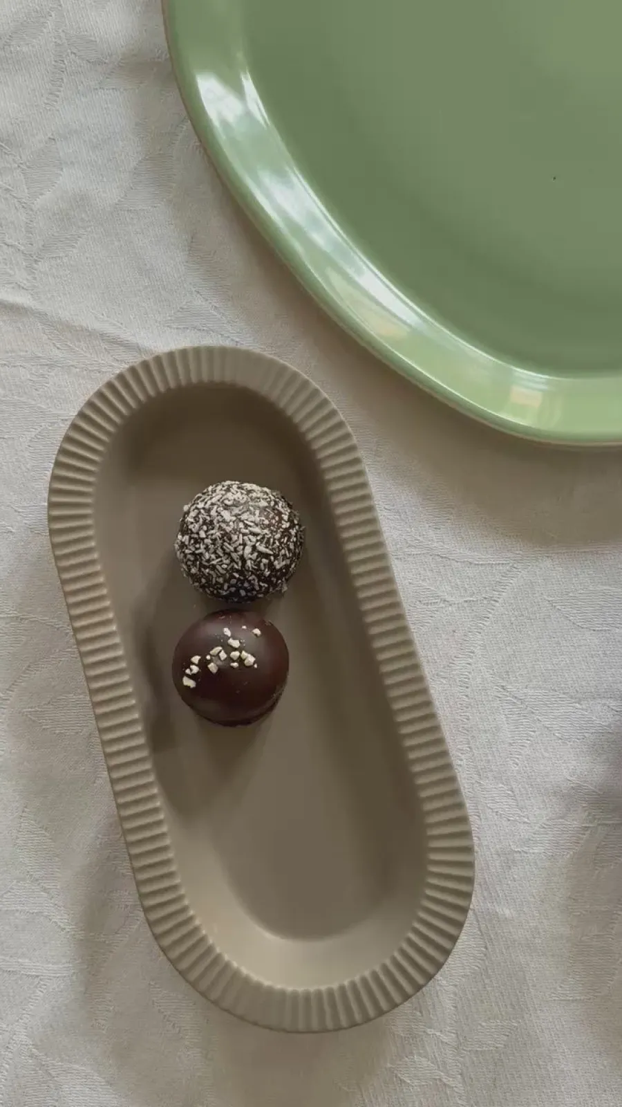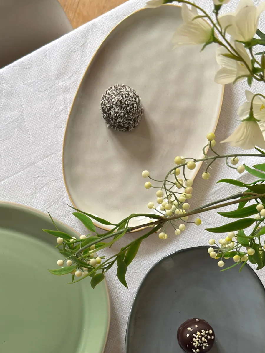 Server dine retter med stil på det elegante Felicia serveringsfad. Fadets ovale form og glaserede overflade giver et moderne og tidløst udtryk, som passer perfekt til både hverdag og festlige lejligheder.