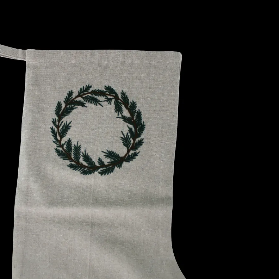 Julestrømpe med kransmotiv (H48x30 cm) er en smuk og klassisk juledekoration, der skaber en elegant stemning i hjemmet. Den neutrale stofkvalitet giver et naturligt og stilrent udtryk, mens den broderede grønne krans tilfører et enkelt, men raffineret julepræg. Strømpens rummelige størrelse gør den ideel til at fylde med små gaver, søde overraskelser eller julegodter, der kan glæde både børn og voksne. Perfekt at hænge på pejsen, ved trappen eller i entréen for at skabe en hyggelig atmosfære. En tidløs klassiker, der kan bruges år efter år.