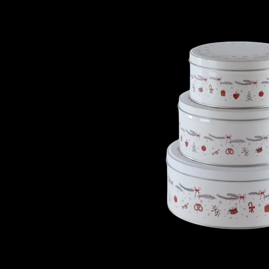 Kagedåse sæt i juledesign med 3 stk. er den perfekte opbevaringsløsning til julens småkager, konfekt og andre lækkerier. Dåserne er udsmykket med klassiske julemotiver i røde og grå nuancer, som skaber en hyggelig og nostalgisk stemning i køkkenet. De tre forskellige størrelser gør det nemt at organisere og opbevare forskellige slags bagværk eller bruge dem dekorativt som en del af julepynten.