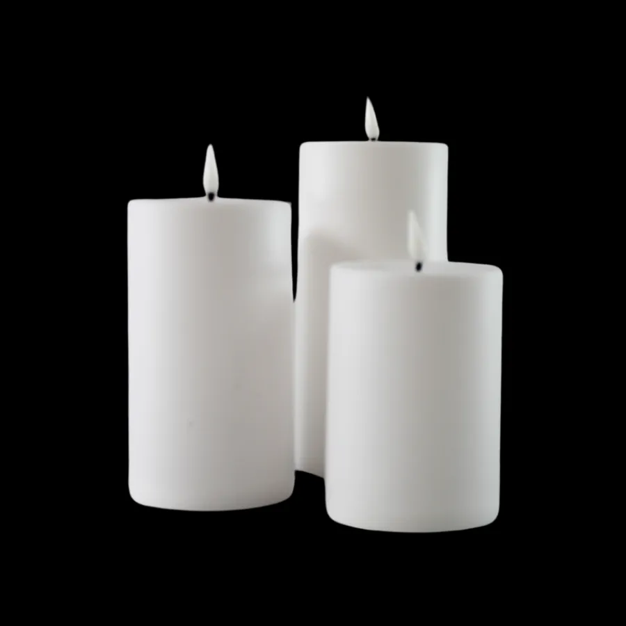 Skab en hyggelig og stemningsfuld belysning med dette sæt af 3 hvide LED-bloklys i plast. De er perfekte til både indendørs og udendørs brug og giver et varmt og behageligt lys uden røg eller brandfare.