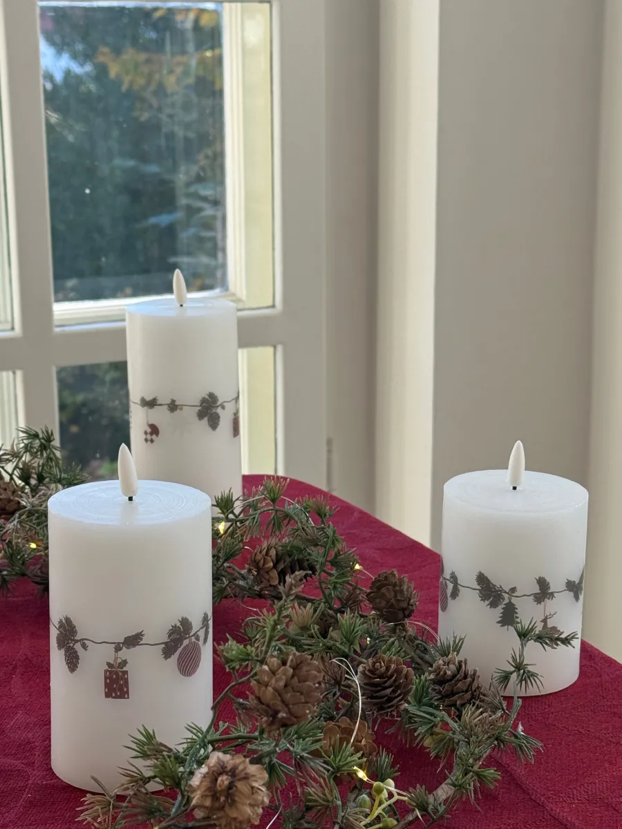 LED Vokslys Juleguirlande er et dekorativt sæt med 3 vokslys, der skaber en hyggelig julestemning med realistisk varm hvid 3D flamme – helt uden brandrisiko. Lysene er fremstillet i ægte voks og dekoreret med smukke julemotiver, og de betjenes nemt med den medfølgende fjernbetjening.
