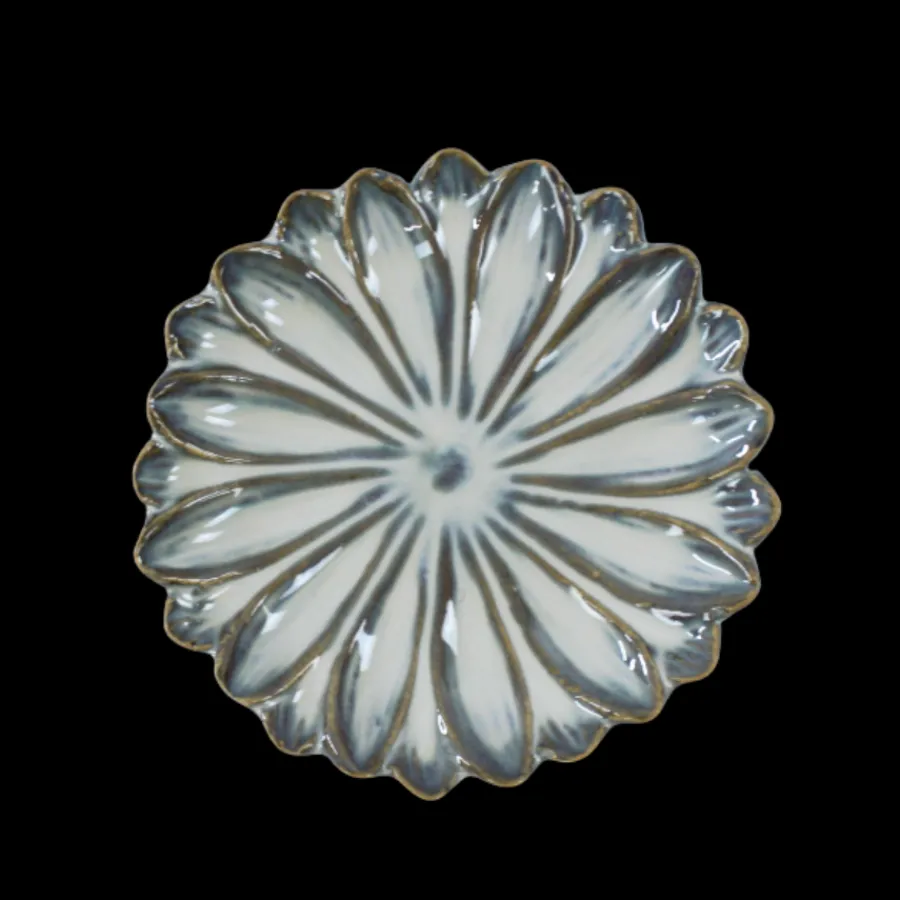 Tilføj et elegant og blomsterinspireret touch til din borddækning med Lille Skål BENIT i hvid. Skålen er formet som en krans af kronblade, og den glaserede overflade i hvide og blågrå nuancer fremhæver de fine detaljer i designet.
