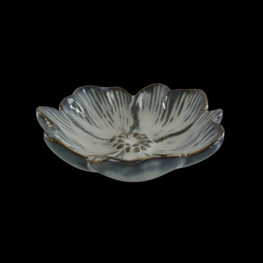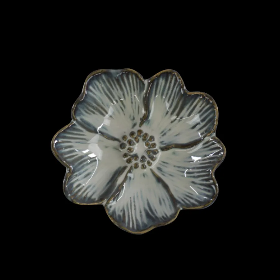 Med sin kompakte størrelse på 10x10x1,7 cm passer den fint både på det perfekt som pynt på hylden. Den glaserede overflade giver en blank finish, der fremhæver de fine blomsterdetaljer, mens de let bølgede kanter tilføjer charme og karakter.