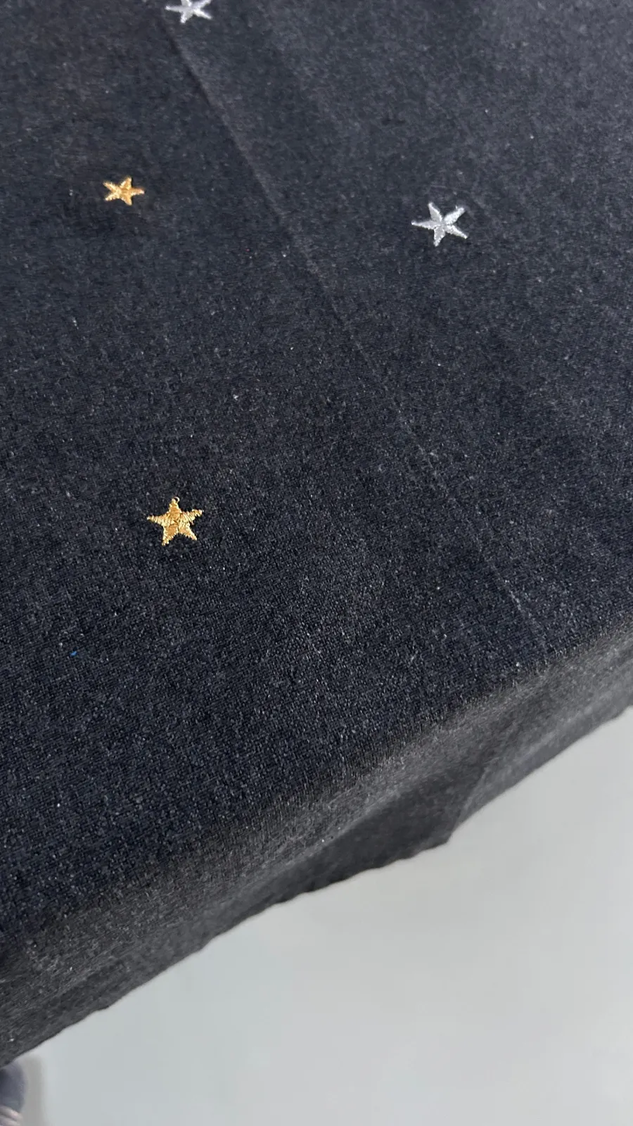 Juledug med stjerner i sølv og guld (140x280cm) er et elegant valg til julebordet, hvor den skaber en festlig og sofistikeret stemning. Den sorte baggrund giver et moderne og stilrent udtryk, mens de broderede stjerner i sølv og guld tilføjer et smukt, glimtende spil. Med sin generøse størrelse er dugen perfekt til det lange spisebord og danner en stilfuld ramme om både julemiddage og hyggelige sammenkomster. Kombinér den med enkelt service eller skinnende dekorationer for at fremhæve kontrasten og give borddækningen et luksuriøst præg. En dug, der forener klassisk jul med moderne elegance.
