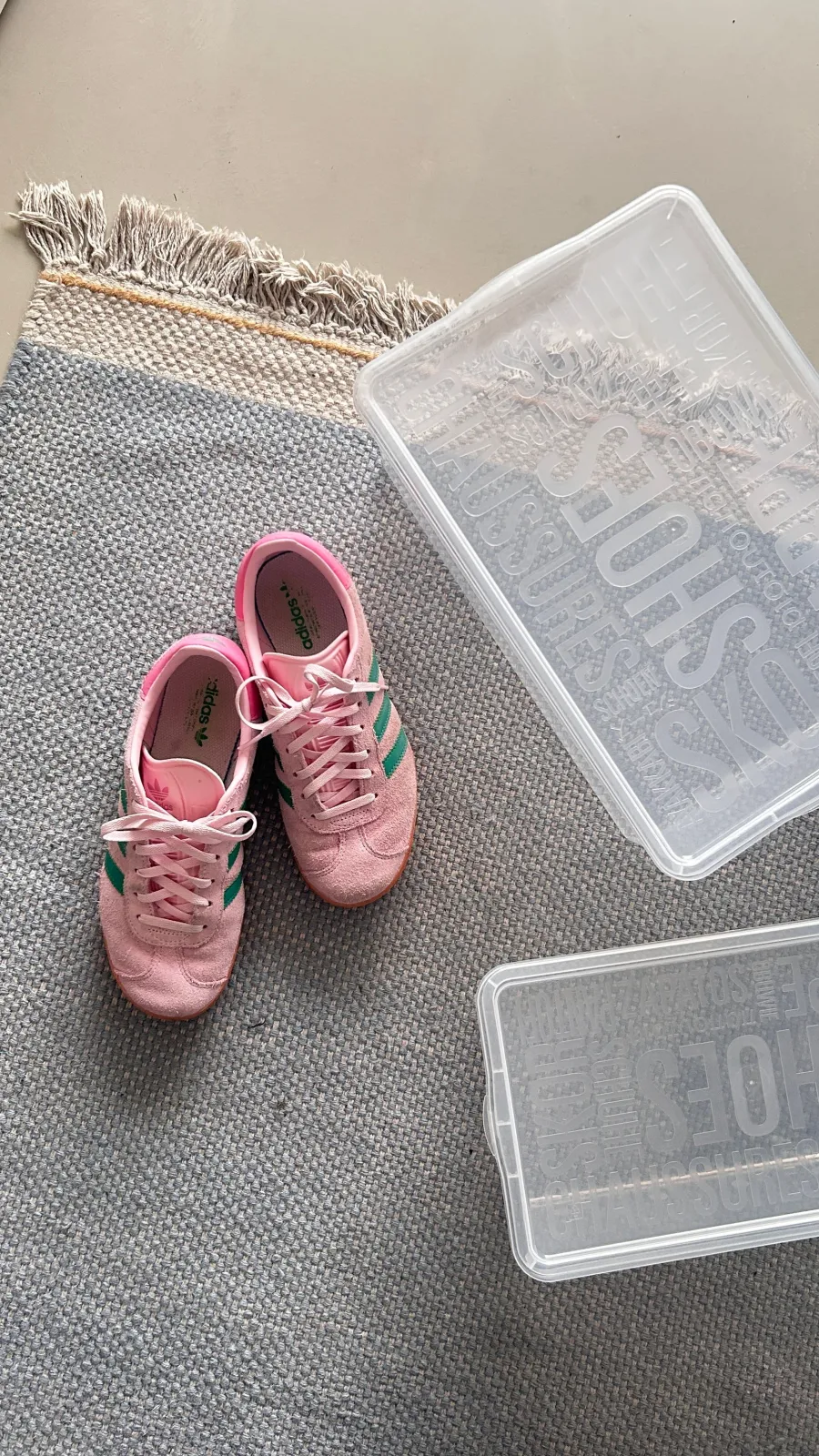 Skokasse i klar plast (39 x 25,8 x 13,3 cm) er en praktisk og funktionel løsning til opbevaring af sko. Den gennemsigtige kasse gør det nemt at få overblik, så du hurtigt finder det par, du leder efter. Med sit enkle design passer den ind i både garderobeskabe, entreer og opbevaringssystemer, hvor den hjælper med at holde orden og beskytte skoene mod støv og snavs. Låget sikrer, at indholdet forbliver rent og organiseret, og størrelsen gør den ideel til alt fra sneakers til pæne sko.