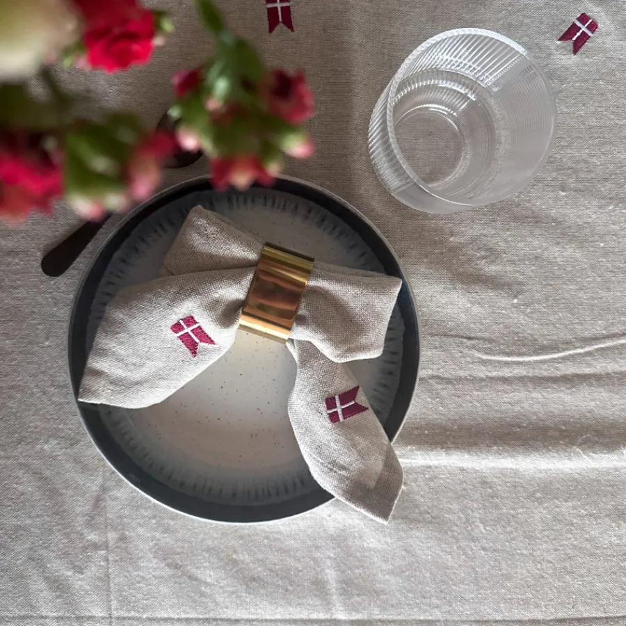 Tilføj et stilfuldt præg til din borddækning med denne elegante serviet med broderet Dannebrog. Med målene 40×40 cm er servietten både praktisk og dekorativ, fremstillet i et blødt og slidstærkt materiale. Det fine broderi af det danske flag skaber et klassisk og tidløst udtryk, der passer perfekt til højtider, fødselsdage, nationaldage eller andre særlige anledninger. Servietten er let at vaske og genbruge, hvilket gør den ideel til både festlige arrangementer og hverdagsbrug.
