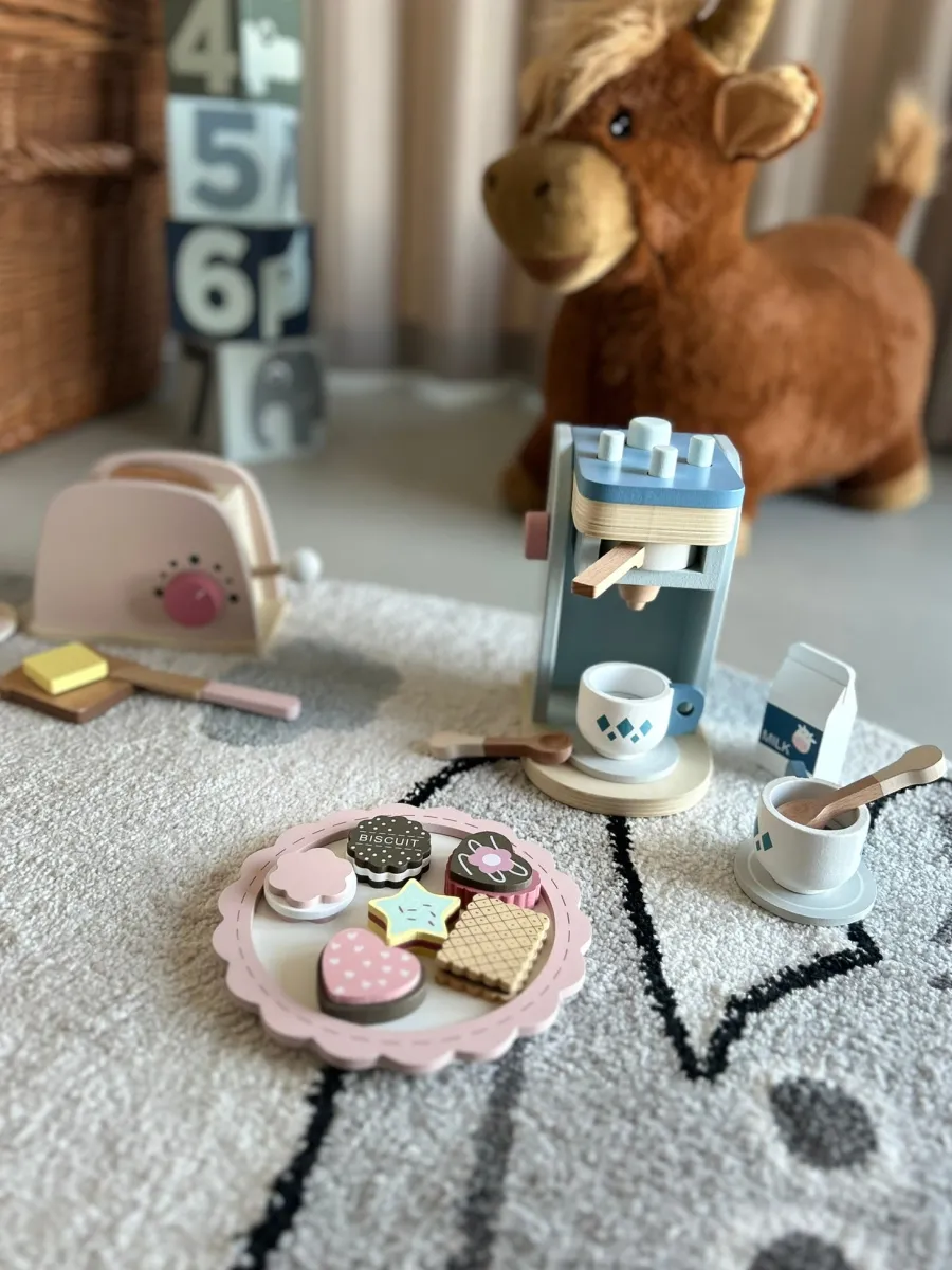 Lad fantasien få frit spil med dette charmerende trælegetøjssæt, der inviterer til mange timers sjov i legekøkkenet. Sættet er perfekt til små bagere og giver mulighed for at øve finmotorikken og udvikle kreative evner gennem rolleleg. De små kokke kan nu kreere de fineste kager.
