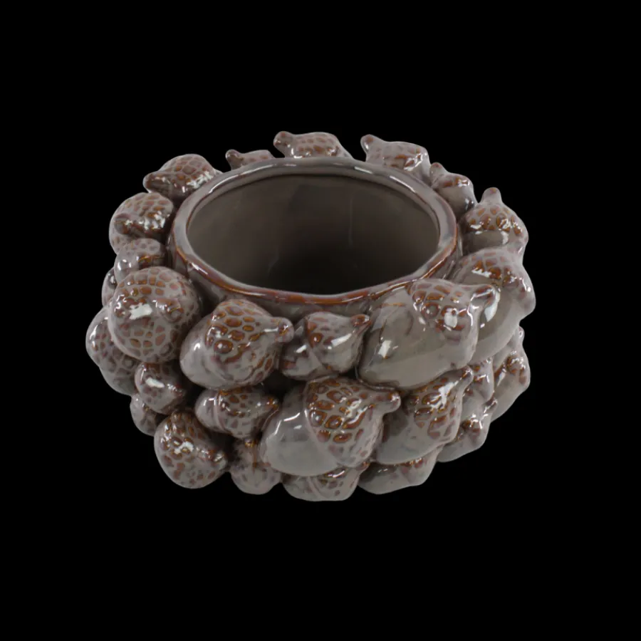 Vase med agern ALVIN er en karakterfuld keramikvase, der skaber opmærksomhed med sit unikke design af små agern i en smuk, glaseret overflade. Den brune nuance giver et naturligt og varmt udtryk, der tilfører charme og personlighed til indretningen. Vasen fungerer både som et dekorativt element i sig selv og som et smukt underlag for tørrede blomster eller grønne planter.