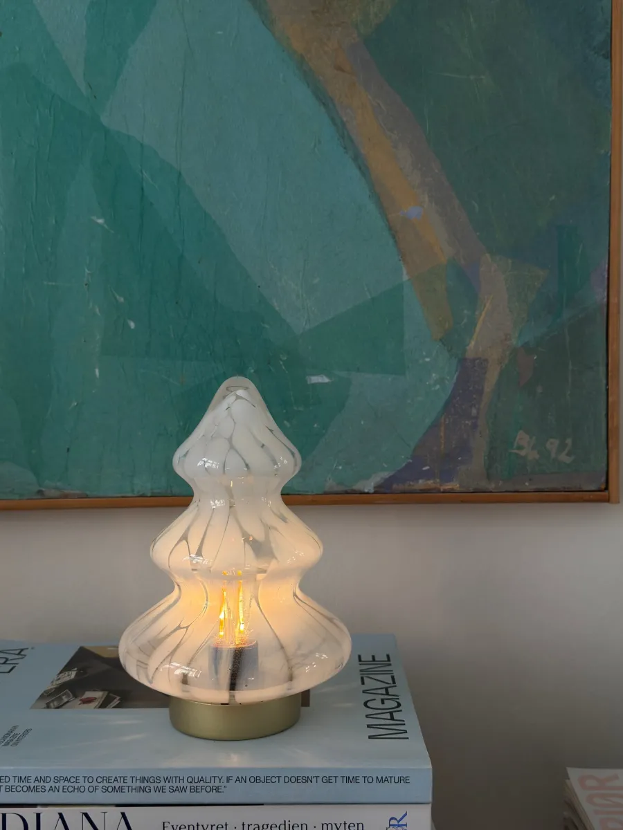 Glasjuletræet med LED-lys (Ø14xH21cm) tilføjer en magisk touch til dit hjem og gør det til den perfekte dekoration i julen. Med sin elegante glasdesign og indbyggede LED-belysning skaber det en varm og indbydende atmosfære, uanset hvor det placeres. Det sofistikerede udtryk passer ind i enhver indretningsstil, fra klassisk til moderne. Glasjuletræet kan nemt styles på reolen, spisebordet eller vindueskarmen og fungerer som et blikfang, der vil begejstre dine gæster. Den bløde belysning tilføjer en hyggelig glød, der inviterer til samvær og festlige stunder. Invester i dette tidløse interiørstykke, som kan genbruges år efter år og bringe glæde ind i dit hjem i juletiden. Gør dit hjem klar til festlighederne med dette glamourøse juletræ, som kombinerer elegance og funktionalitet på smukkeste vis.