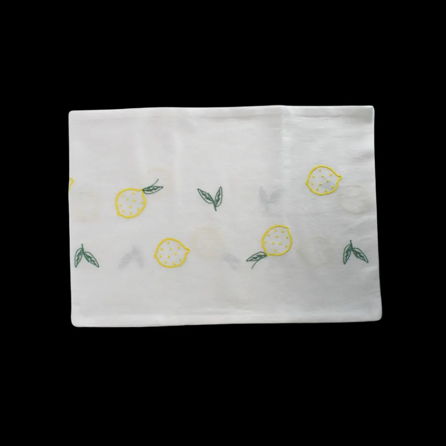Bordløber med Citron FREDERIKA på 30×180 cm er et friskt indslag til dit spisebord. Den hvide bund er dekoreret med et let mønster af gule citroner og grønne blade, der giver en lys og indbydende stemning til både hverdag og festlige lejligheder. Bordløberen er fremstillet i et blødt materiale, som gør den både dekorativ og praktisk i brug. Med sit enkle og legende design passer den perfekt til både indendørs og udendørs borddækning og kan nemt kombineres med servietter, dækkeservietter eller andet tilbehør for at skabe et fuldendt og harmonisk udtryk.