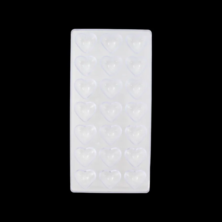 Chokoladeform i hjerteform er perfekt til at skabe romantiske og personlige chokolader til enhver lejlighed. Formen måler 27 x 15 x 2,5 cm og gør det let at arbejde med tempereret chokolade og opnå en flot glans. De fine hjerteformede fordybninger giver dine kreationer et elegant udtryk.