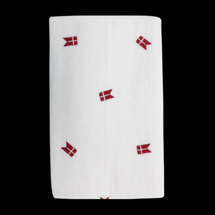 Tilføj et klassisk præg til din borddækning med denne hvide dug med broderet dannebrog. Måler 140×270 cm, og er den perfekte størrelse til at dække større borde til festlige anledninger. Dugen giver et stilfuldt og tidløst udtryk, hvilket gør den ideel til nationale helligdage, fødselsdage, højtider eller enhver anden særlig begivenhed, hvor du ønsker at fejre den danske tradition. Det diskrete broderi af det danske flag på dugen tilføjer et elegant, men alligevel markant element til din borddækning, og skaber en hyggelig og festlig stemning.