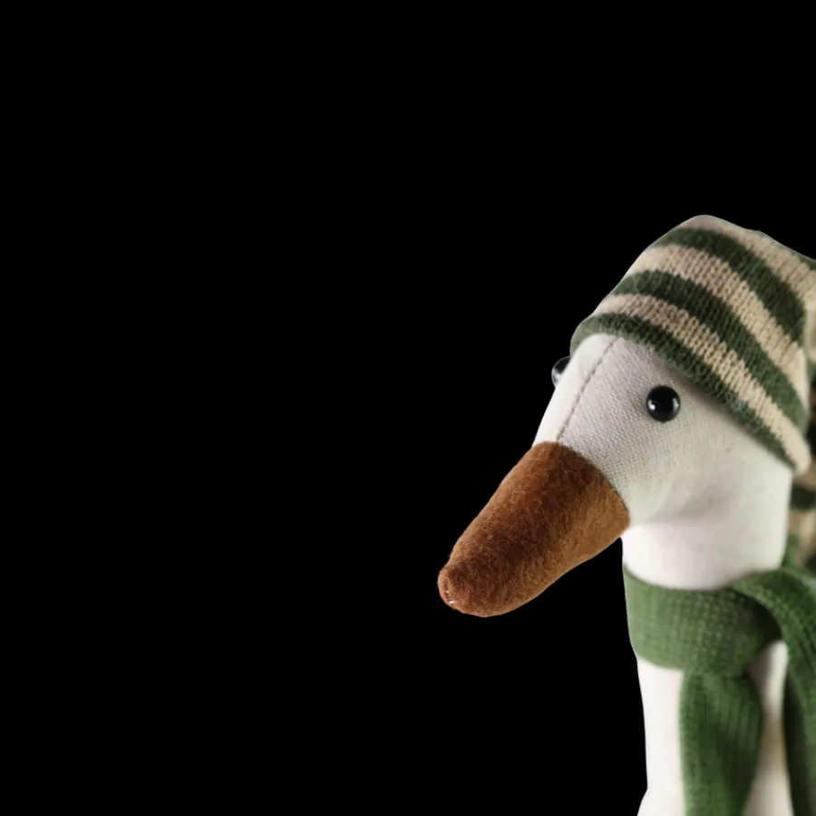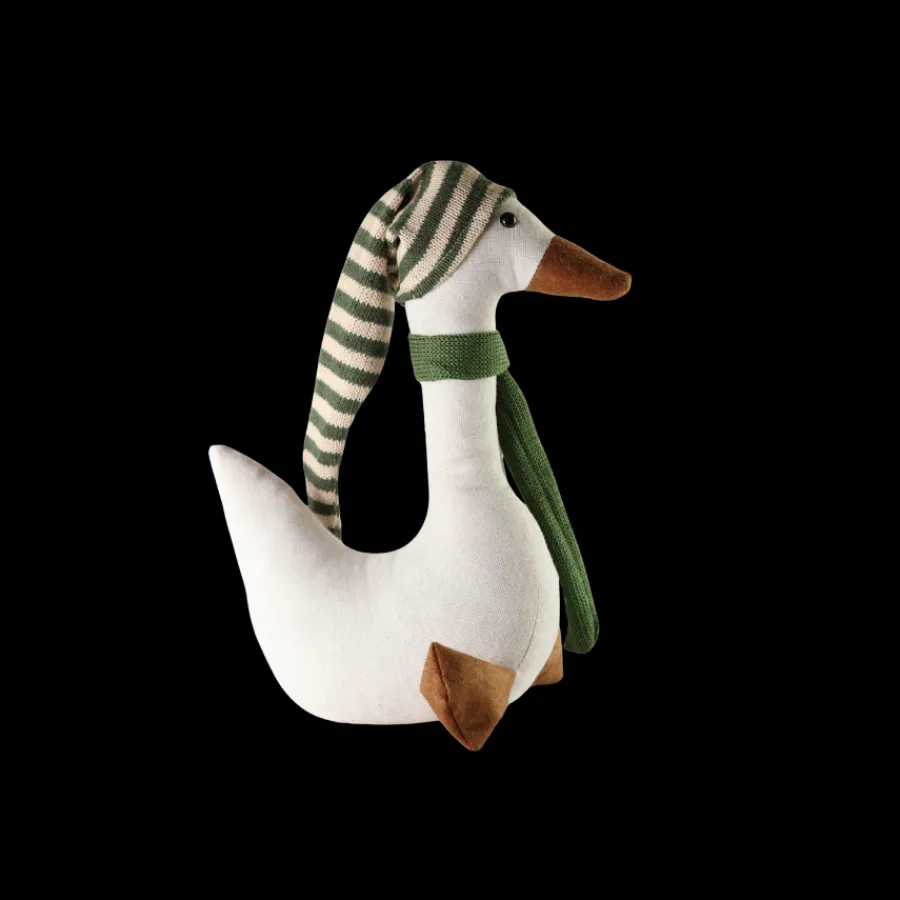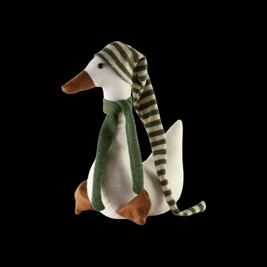 Juleand med en højde på 70 cm (med huen udstrakt) er en sød og dekorativ figur, der skaber en hyggelig julestemning i hjemmet. Den bløde tekstilfigur er pyntet med en grøn- og sandfarvet strikhue samt et matchende grønt tørklæde, som giver et moderne og charmerende udtryk. Med sin højde er den ideel til at pynte i vindueskarmen, ved siden af juletræet eller som en del af en dekorativ juleopstilling. En stilfuld og legende detalje, der bringer varme og glæde til decemberdagene.