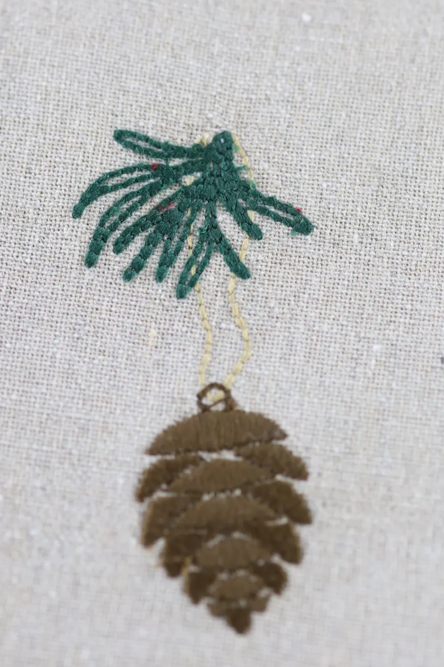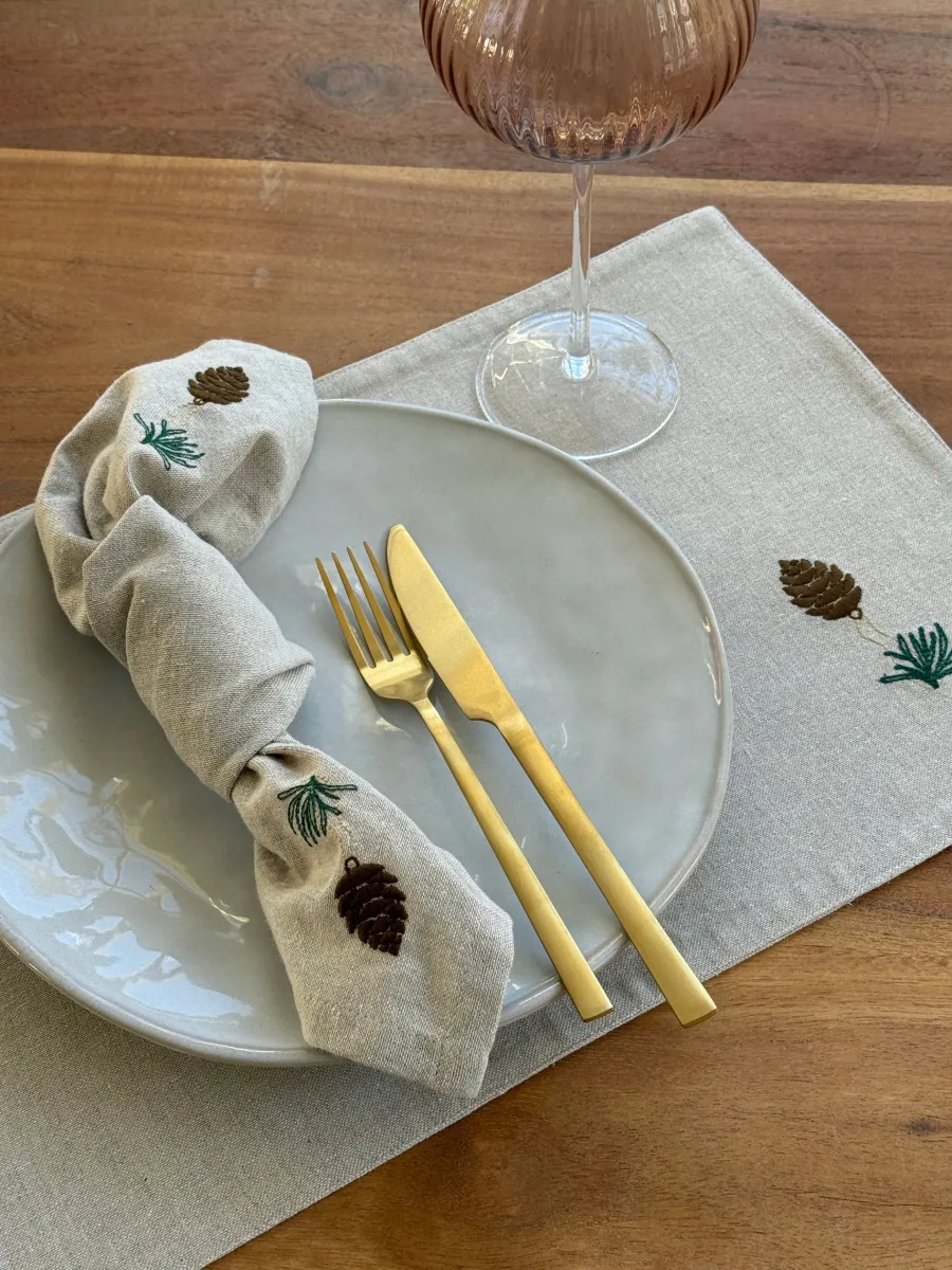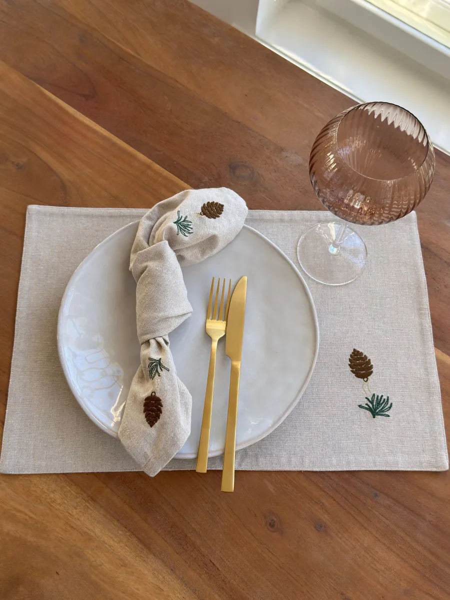 Juledækkeserviet m. Grankogle Broderi (30x45cm) giver et diskret, men stemningsfuldt udtryk. Stoffets let rustikke struktur passer smukt til både klassisk og moderne julepynt. Brug dækkeservietten som base for dit festlige service og lad detaljerne fremhæve julens enkle skønhed. En tidløs tilføjelse til din borddækning, der kan bruges år efter år.