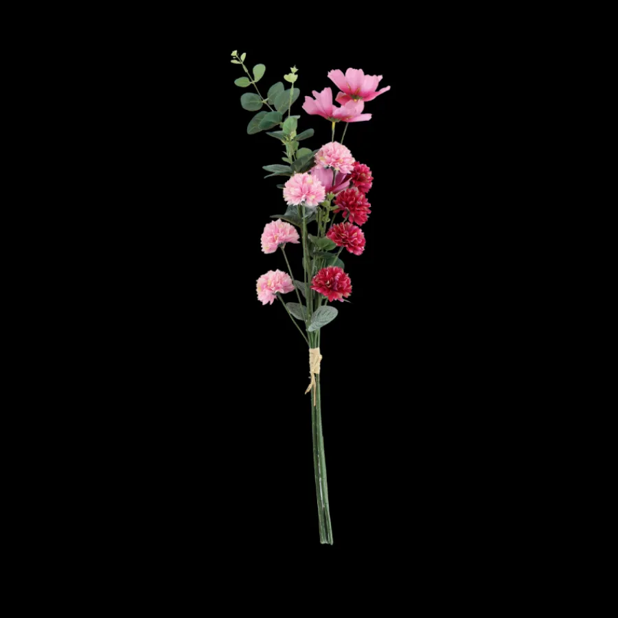 Kunstig Buket ESTER Flerfarvet er en smuk sammensætning af blomster i fine rosa og rødlige nuancer, der bringer liv og farve ind i hjemmet. De naturtro blomster og grønne detaljer skaber et friskt og harmonisk udtryk, som holder sig smukt år efter år. Buketten står elegant alene i en vase, men kan også kombineres med andre kunstige blomster for et personligt præg. En vedligeholdelsesfri dekoration, der tilføjer varme og charme til indretningen.
