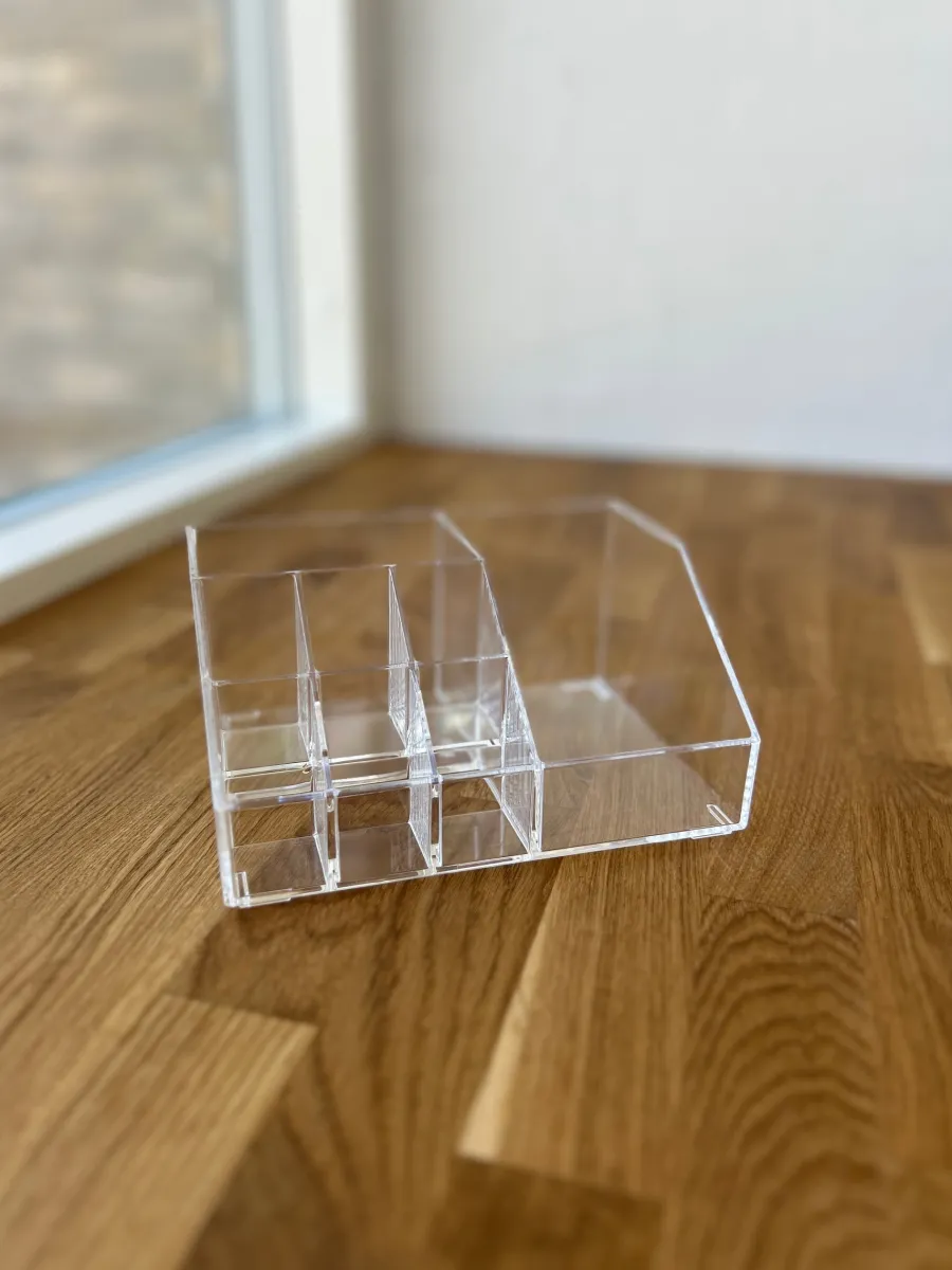 Makeup Organizer i størrelsen 17×12,7×8,2cm er den perfekte løsning til at holde dit makeup-univers pænt og ordentligt. Med sit stilfulde design og gennemsigtige materiale giver den ikke blot et elegant udtryk, men gør det også let at finde de produkter, du bruger dagligt. Det rummelige design har plads til alt fra læbestifter til foundation og sikrer, at dine produkter er beskyttede mod støv og skader. Denne organizer er ideel til både badeværelset og toiletbordet, hvilket muliggør en praktisk og smuk opbevaringsløsning.