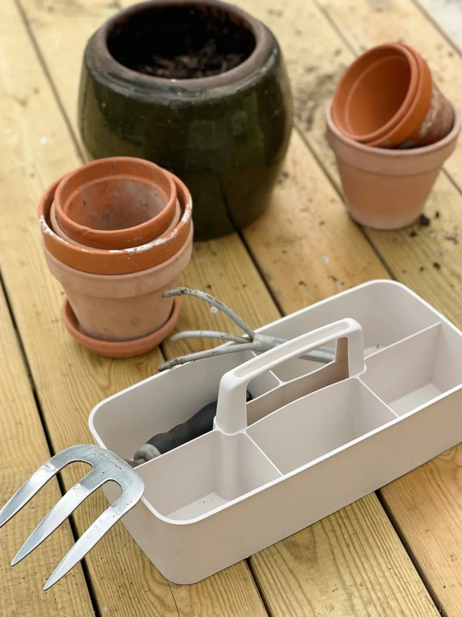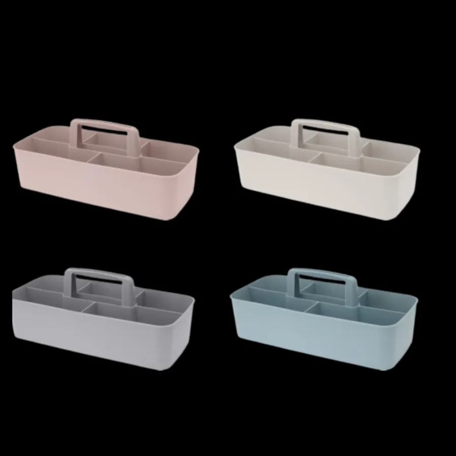 Opbevaringsboks med håndtag og flere rum er den ideelle løsning til at holde styr på hverdagens småting. Boksen har et praktisk bærehåndtag og flere rum, der gør det nemt at organisere alt fra rengøringsartikler og kontorudstyr til makeup og hobbyting. Den robuste plastkvalitet og enkle form gør den både holdbar og stilren, så den passer ind i ethvert rum i hjemmet. De afdæmpede farver tilføjer et moderne og roligt udtryk, der harmonerer smukt med nutidens boligindretning.