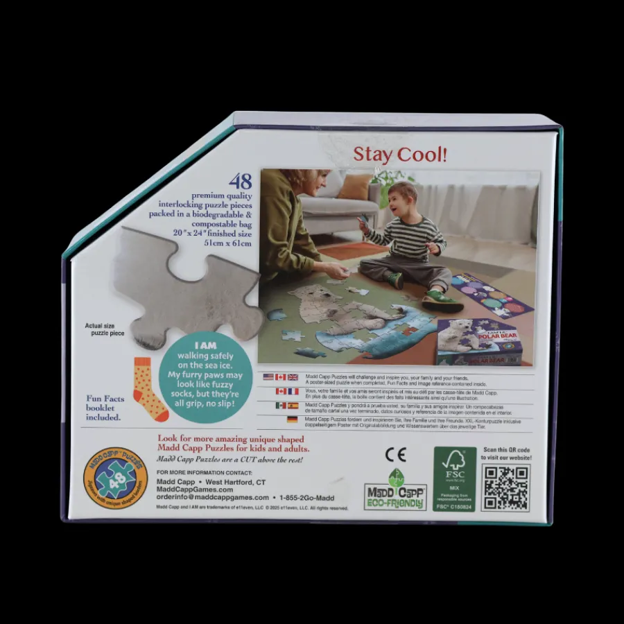 Puslespil Isbjørn 48 brikker er et sødt og lærerigt puslespil, der viser en nuttet isbjørn i sit kolde, sneklædte miljø. Med sine store, formskårne brikker er det ideelt til børn, der vil træne tålmodighed og finmotorik på en sjov måde. Motivet er charmerende og naturtro, og det færdige billede gør sig flot som dekoration på børneværelset. Et hyggeligt valg til familiestunder og en skøn gaveidé til små dyreelskere.