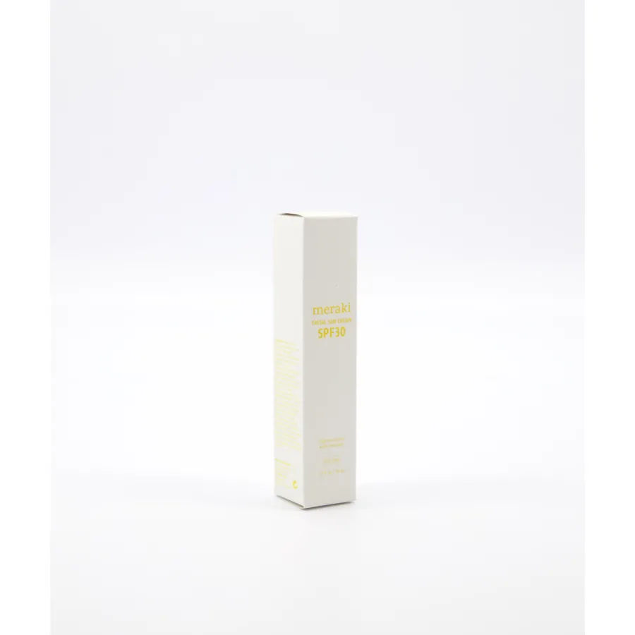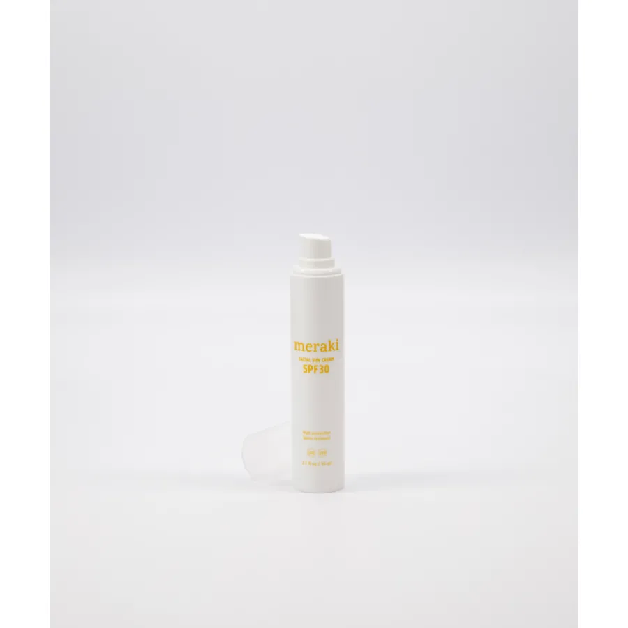 Meraki Facial Sun Cream Mildly Scented SPF 30 er en vandafvisende solcreme specielt udviklet til ansigtet. Den indeholder kemiske UVA- og UVB-filtre, der effektivt absorberer solens skadelige stråler, uden at efterlade hvide striber eller en fedtet fornemmelse på huden. Beriget med E-vitamin og aloe vera, fugter og plejer den huden, hvilket hjælper med at holde den blød og smidig, selv under solbadning.