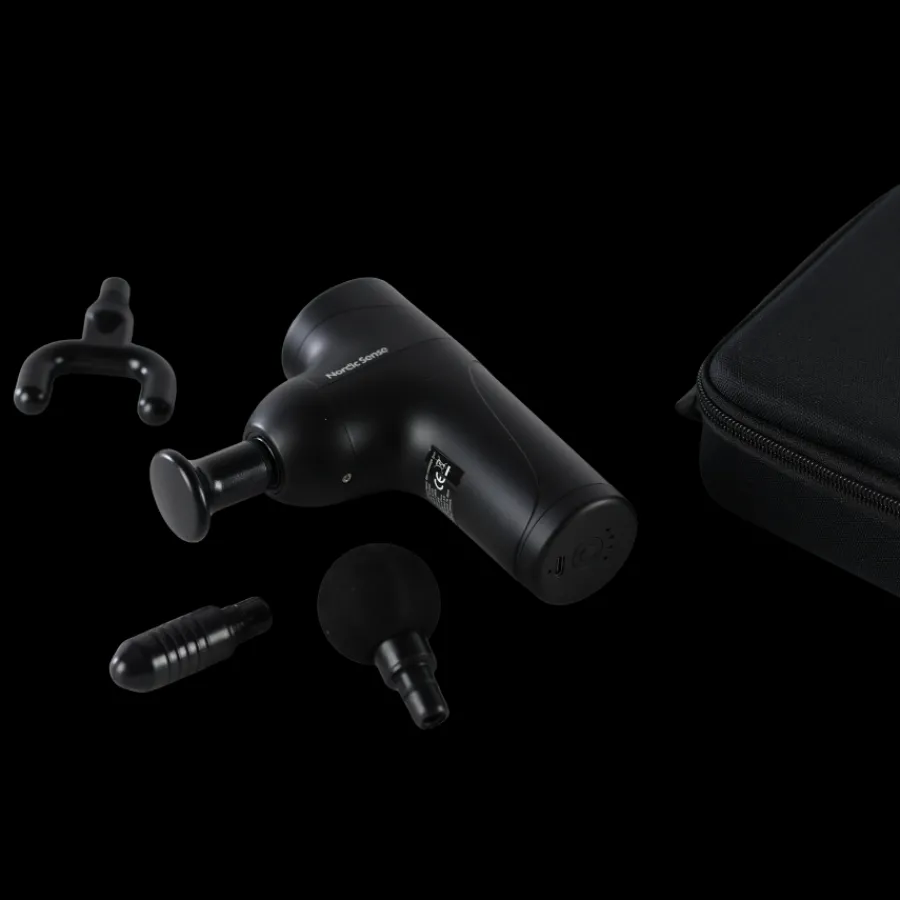 Nordic Sense mini massagepistol i sort er en kompakt og effektiv løsning til hurtig muskelafslapning og restitution. Med 4 forskellige massagehoveder kan du tilpasse behandlingen efter behov – fra dybdegående massage til mere skånsom stimulering. Den har 4 intensitetsniveauer, så du nemt kan justere styrken, og en praktisk lysindikator viser, hvornår den er i brug. Massagepistolen er genopladelig og slukker automatisk efter 15 minutter for sikker anvendelse. Den leveres i en smart opbevaringstaske, der gør den nem at have med på farten.