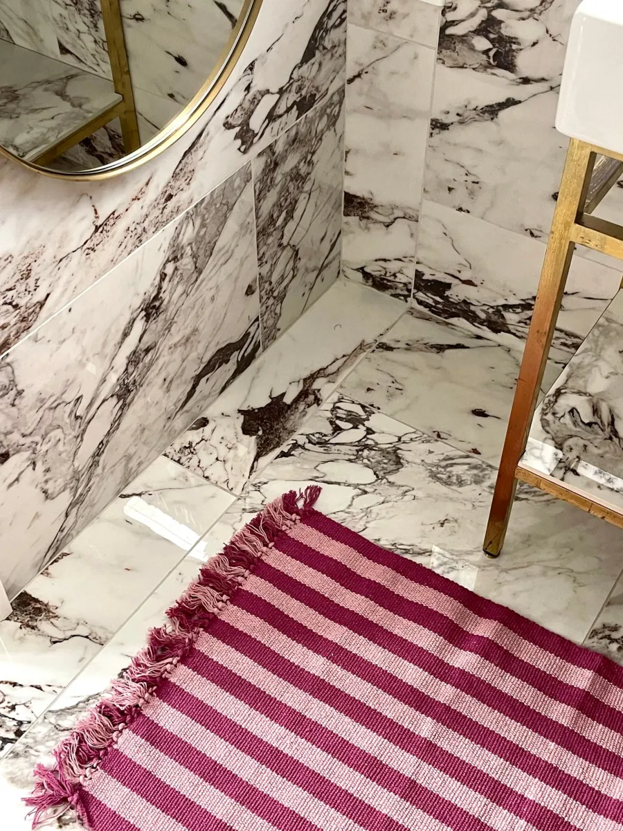 Forvandl dine gulve med dette Håndvævede Tæppe med Rosa Striber – et unikt udtryk for stil og håndværk, der skaber en indbydende og varm atmosfære i dit hjem.
