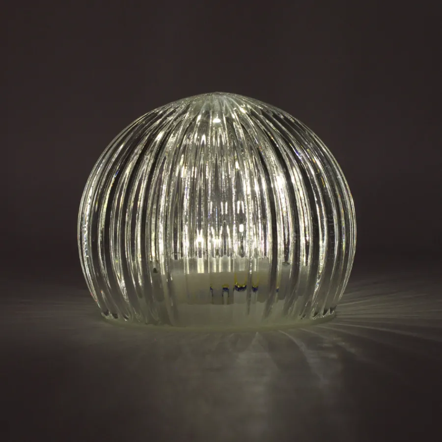 Lille Glas Kugle med LED (Ø10 x 7,5 cm) tilføjer en elegant og moderne touch til ethvert rum. Denne smukke kugle er perfekt til at skabe en hyggelig atmosfære, uanset om det er i stuen, soveværelset eller på skrivebordet. Den bløde belysning fra den indbyggede LED-lampe giver en varm glød, der komplementerer dit boliginteriør og skaber en indbydende stemning. Den enkle, men stilfulde design gør, at kuglen passer ind i både moderne og klassiske indretninger. Brug den som en centerpiece på dit spisebord, eller lad den pryde din hylde for at tilføre karakter til dit hjem. Uanset hvor den placeres, vil Lille Glas Kugle med LED fungere som et iøjnefaldende element, der løfter indretningen. Gør dit hjem til et stille og elegant fristed med denne dekorative løsning.