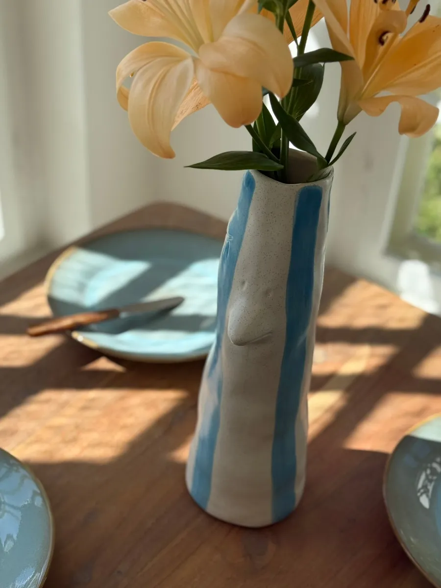 Villa Collection Whimsy vasen tilføjer et strejf af elegance og ro til ethvert rum. Den blå stentøjsoverflade giver vasen et unikt og sofistikeret udtryk, der komplementerer både moderne og klassiske indretningsstile. Vasens form er designet til at fremhæve skønheden i dine blomsterarrangementer, og den er lige så smuk med som uden blomster. Placer den på spisebordet, i vindueskarmen eller på en hylde for at skabe et indbydende og stilfuldt miljø. En smuk detalje i hjemmet, der skaber glæde hver dag.