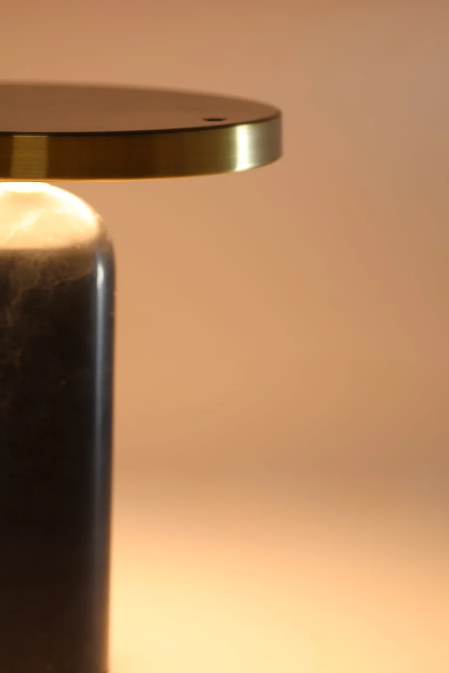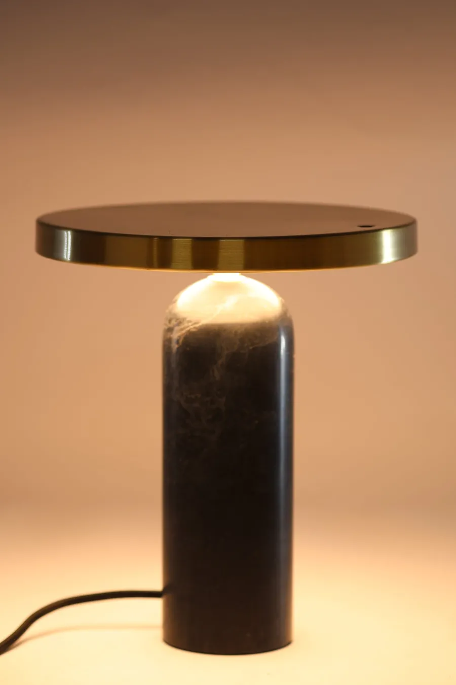 Villa bordlampe Vilja i sort marmor (22,5 x 25 cm) er en elegant og moderne lampe, der forener eksklusivitet og enkelthed. Den solide base i sort marmor giver et luksuriøst udtryk, mens den gyldne lampeskærm tilfører varme og et stilfuldt spil i indretningen. Lampen betjenes nemt med en diskret touch-knap på toppen, hvor du kan tænde og slukke lyset med et enkelt tryk. Den kompakte størrelse gør den nem at placere, og den tilfører et fint touch til ethvert rum. En smuk lampe, der både fungerer som stemningsskaber og designelement.